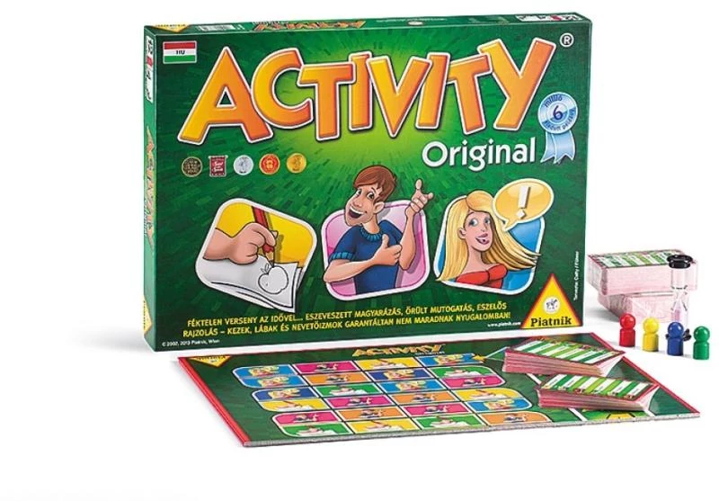 Az Activity Original kreatív kommunikációs party társasjáték.A játék folyamán az a feladatunk, hogy féktelen versenyt fussunk az idővel, eszeveszett magyarázás, őrült mutogatás, eszelős rajzolás jellemzi. Ha a csapattagok adott idő alatt meg tudják fejteni a feladványt, akkor a csapat továbbléphet a játéktáblán.Az ACTIVITY társasjáték az év legjobb játékának kétszer is megválasztott társasjáték! Ajánlott 3-16 játékos részére, 12 éves kortól.Tartozékok: