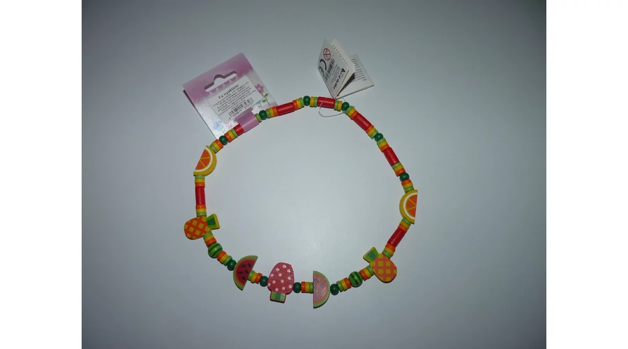 Vidám, színes, különböző színű és formájú gyöngyökből készült fa nyaklánc lányoknak, melyet különböző gyümölcs formák díszítenek. Rugalmas ékszer, melyet kisebbek is könnyen fel-le tudnak venni. Tökéletes kiegészítője lehet egy ruhának, szerepjátékoknak, nyári kalandoknak.. (Kapható hozzá illő karkötő is a készlet erejéig) |