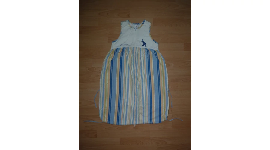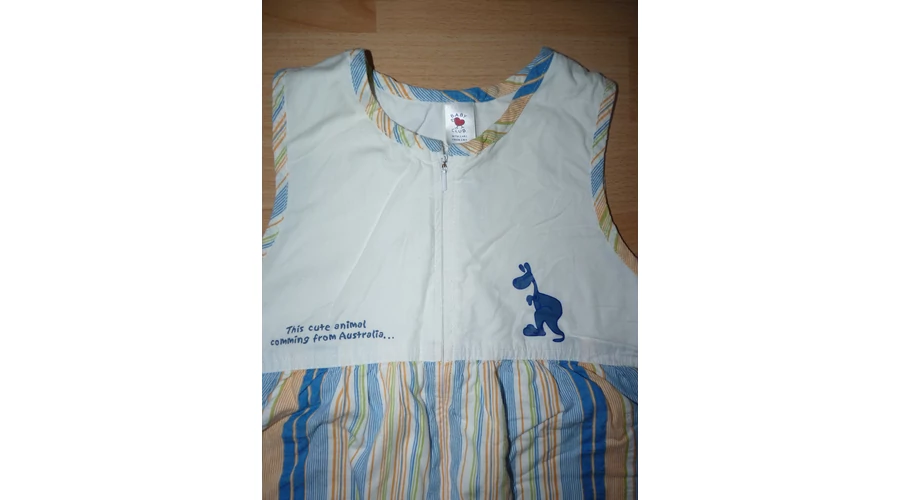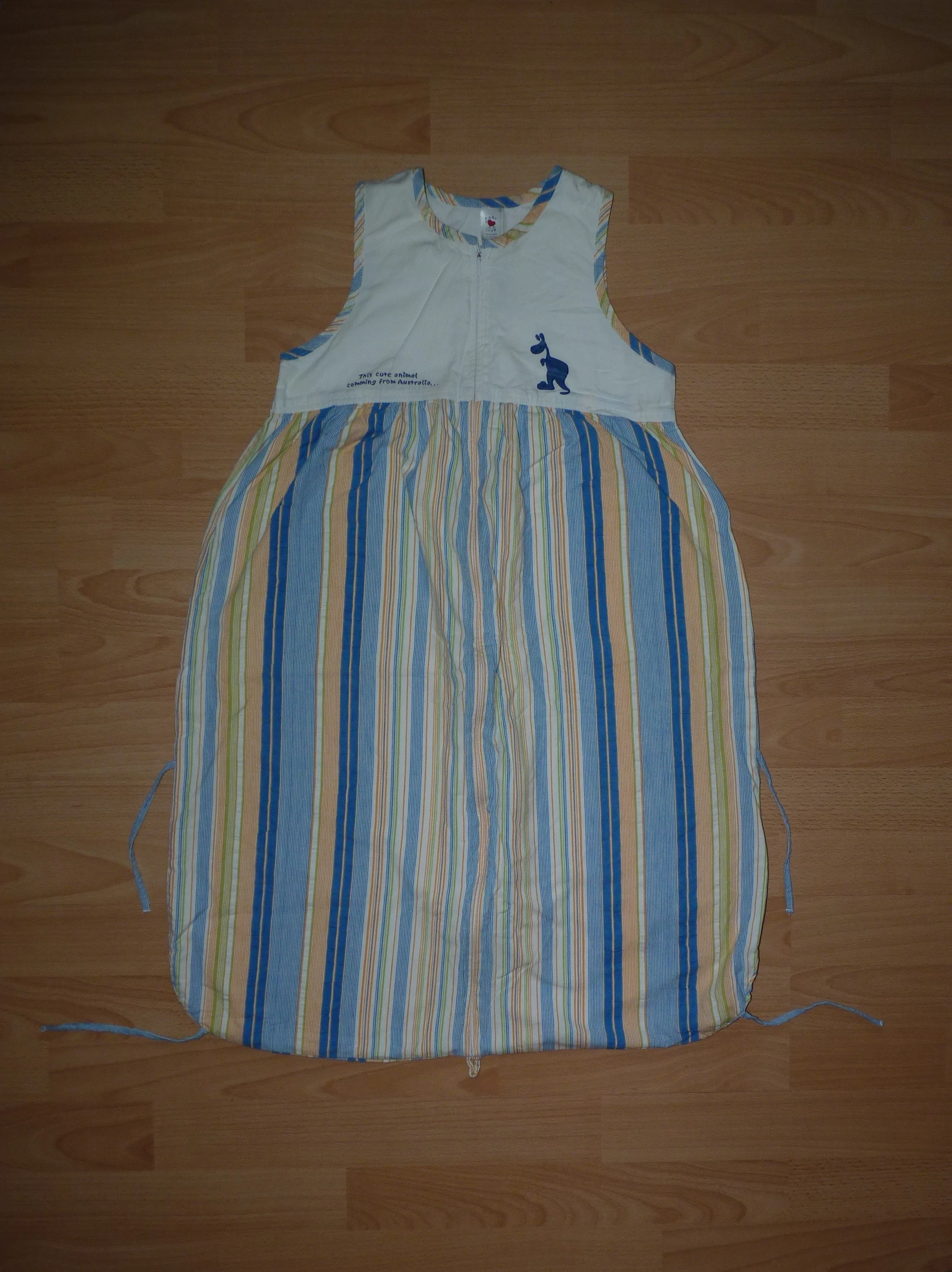 Kellemes viseletű, szuper hálózsák, elején kenguru mintával. Elől végig cipzáros, így könnyű az öltözködés. Hátul felcsatolható, így kisebb kortól sokáig hordható, nem gabalyodik bele a gyermek. Kisebb hossza válltól: 72 cm. |