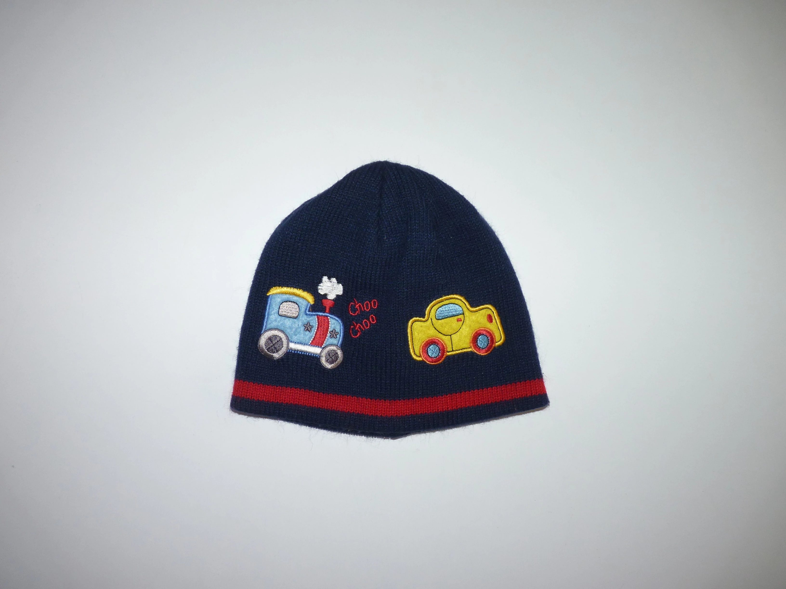 Vonatos, autós kötött fiú sapka ~3-4 év