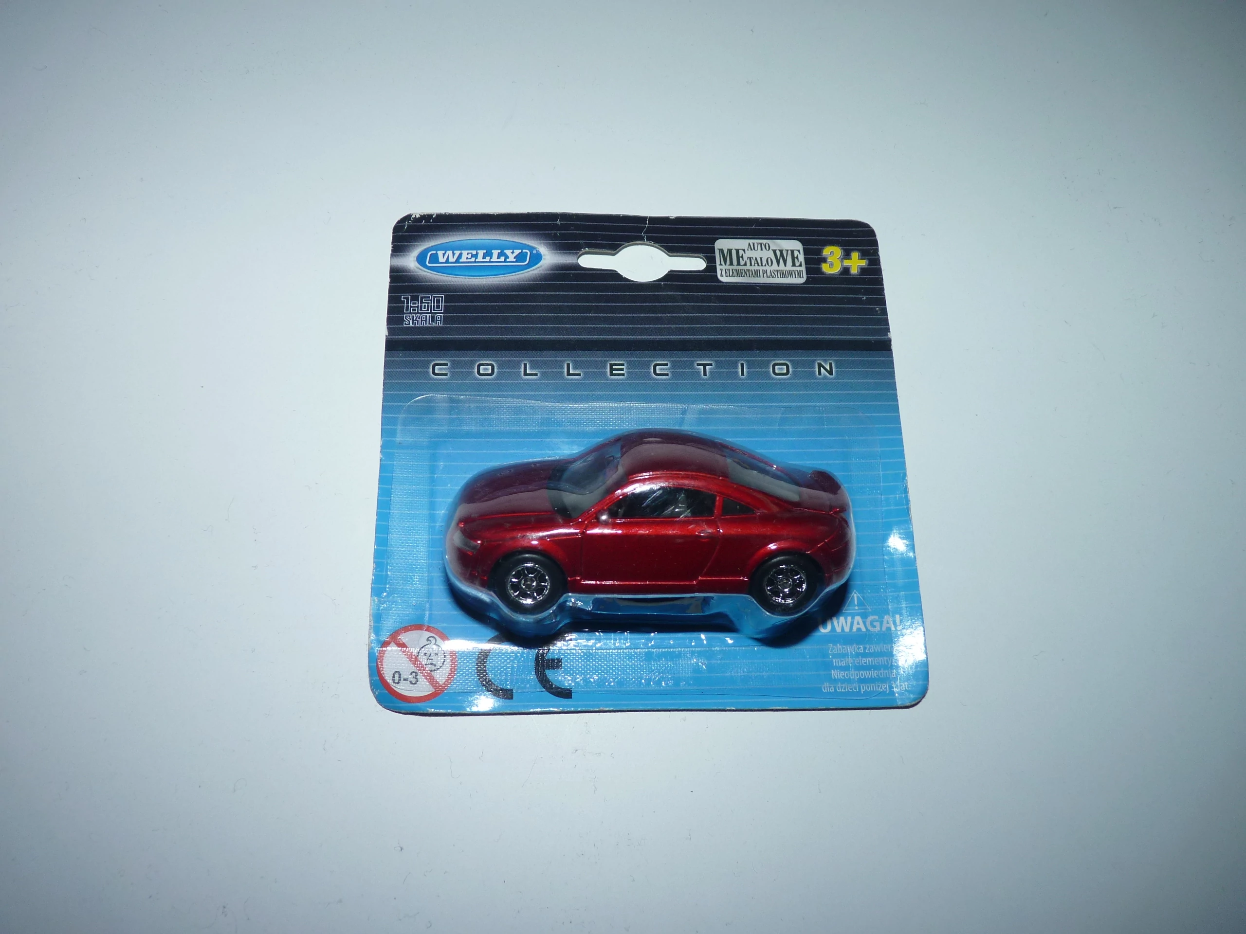 Audi TT kisautó, metál bordó színű. Anyaga fém és műanyag, kb 8cm. Méretaránya 1:60 Új, a csomagolás papír széle minimálisan kopottas. |